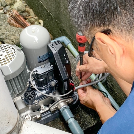 (・・・今回は、現調した結果、使用されていた井戸ポンプが、 20年前のかなり老朽化していた状態であったので、 インバター式の音の静かな新品の物に交換させて頂きました。)