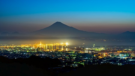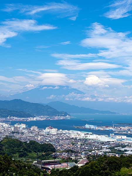 会社出勤前の僅かな時間に日本平にのぼり清水港越の富士山を撮影してきました。