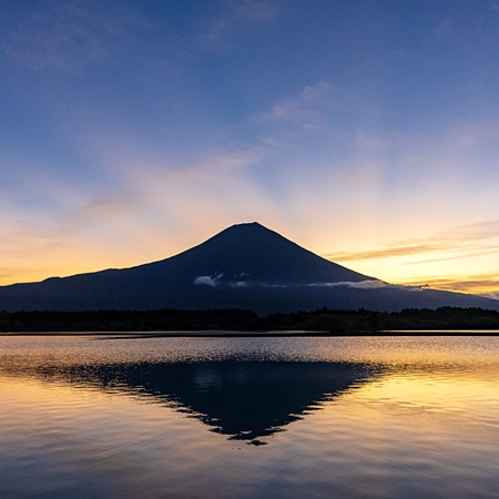 空に湖に延び、まるで富士山に後光がさしているよでした。