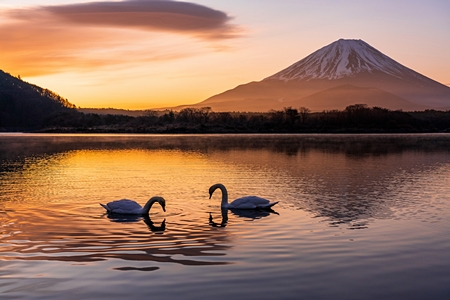 早朝湖畔でじっと富士山撮影に夢中になっていると、