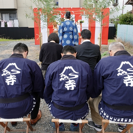 はい、先ずはその前に、土地を清め、工事の安全を祈願し、 なによりも、これから此処に住まわれるお客様の永遠の幸せを願い、 地鎮祭を執り行わせて頂きました。