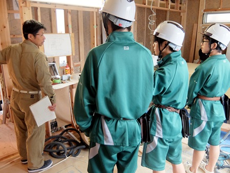 壁のボード留め作業に先ずはチャレンジしてもらいました。