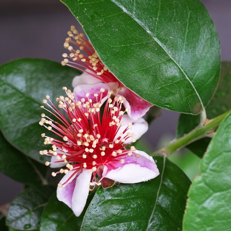 はい!南国ムードいっぱいのフェイジョアの花が咲き始めたのです。