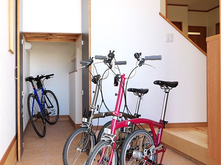玄関内に、上手いことスペースを確保できるプランを選択して頂けたら、 大切な自転車は、いつもピカピカ!!