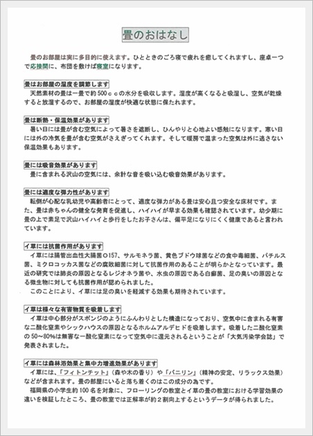 『いいものがあるよ!畳の効能を分かり易くまとめたものだよ!』と、