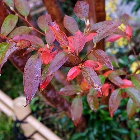 弊社事務所脇の小さな庭のヒメシャラノの樹も、葉を真っ赤に染めてきました。