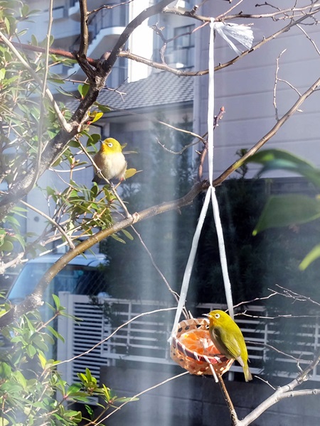 きっとメジロたちもお客様をお出迎えしているのでしょうね。