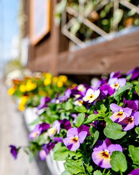 何度かの氷点下の日の冷たさも乗り越え、 事務所前のビオラの花が満開状態をむかえています。