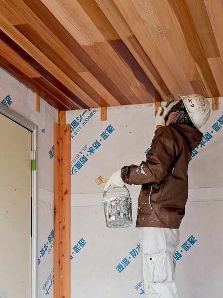 その美しさをそのままに、 ナチュラルで透明感ある木部専用の保護塗装を施していきます。