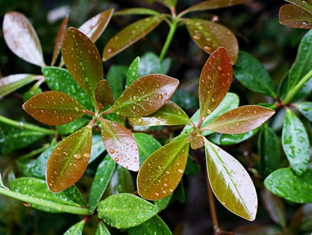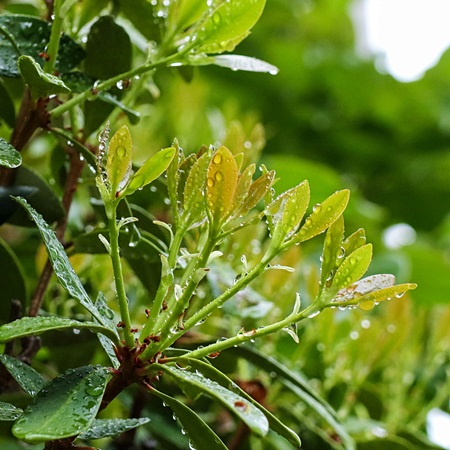 はい!午後には雨も上がって、 庭のモッコクの葉っぱもキラキラと輝いています。