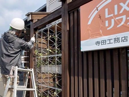 静岡注文住宅 木製パーゴラの塗り替え作業