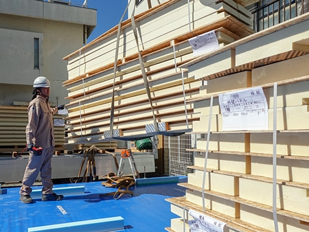 本日は朝一より、スーパーウォールパネルが現場搬入されました。 M様邸で使用させて頂きます高断熱パネルは、 発泡ウレタン(スーパーウォールパネル)の100mm厚! 優れた断熱性・気密性の高性能住宅を作りあげる重要な資材です。 この優れた断熱パネルを使って、HEAT20・G2グレードの快適住宅を造り上げていきます。 はい!お客様が末永く快適にお過ごしいただける『いい家』づくりに努めていきます。