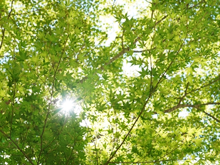 太陽の光を和らげ揺らぎのリズムで揺れる青もみじ・・・。