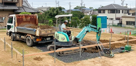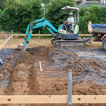 はい!本日午後より『基礎・根切工事』を開始いたしました。