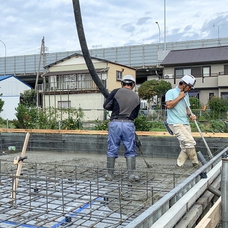 本日は、AM8:30より、 基礎耐圧版部のコンクリート打設作業を行いました。