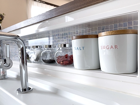 小物たち(調味料入れ等々)を整理して手元に置いておけるので、