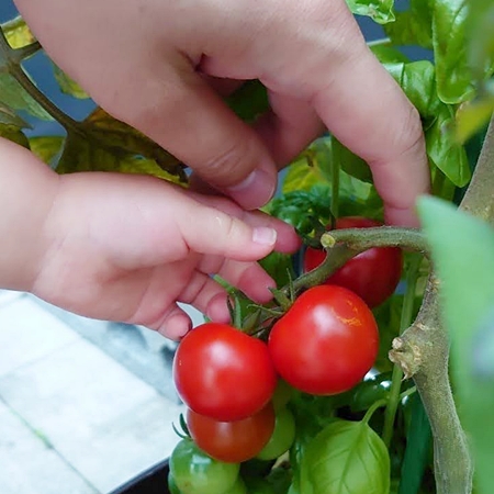 真っ赤なミニトマト収穫の画像が娘から送られてきました。