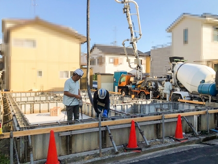 明日から4日間、弊社も夏季休暇期間となります。 その前に、工程の節目となるコンクリート打設作業を行いました。