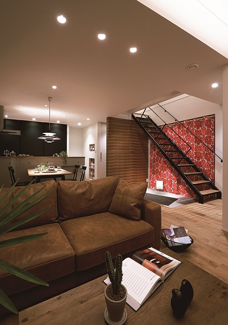 解放的にヨコへ「つながり、オープン階段や、吹き抜けで、