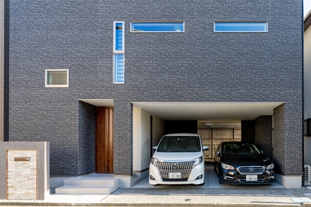 今回のブログでは、家の【性能】のお話ではなく、 【玄関】についてお話させて頂きます。 設計要件に、一階部にインナーガレージとして、 並列二台駐車できる設計とすること。