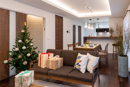【クリスマスツリー】の飾られたリビングを撮影させて頂いたものです。
