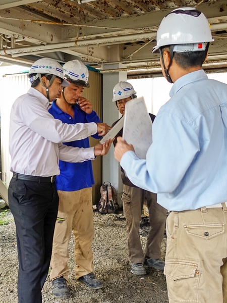 現場朝礼にて、安全作業指示等々を徹底し、