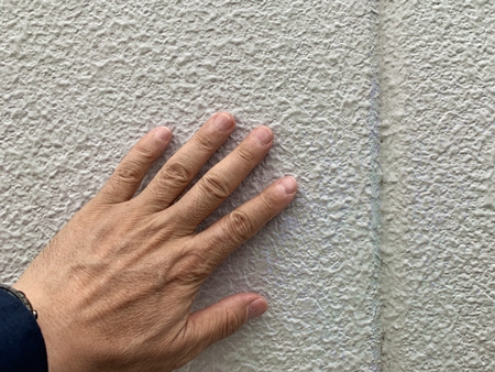 上の写真にありますように、外壁面にそっと指先を押し当ててみます。
