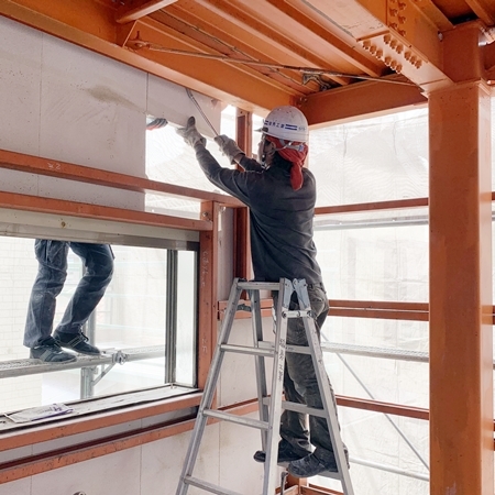 既設の柱(開口部)部の養生設置確認! OK!