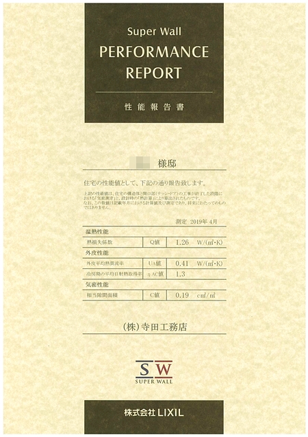 はい!家の性能報告書もしっかりとご提示させて頂きます。