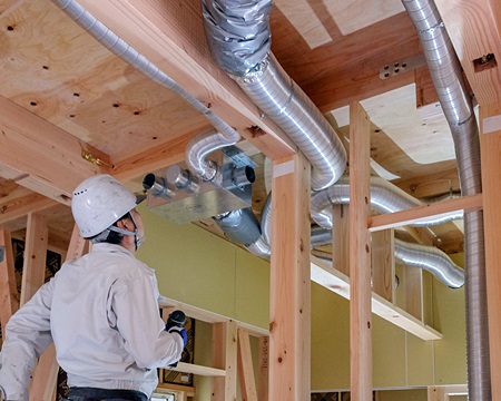 弊社では全熱交換型換気システム(エコエア90)を採用しています。