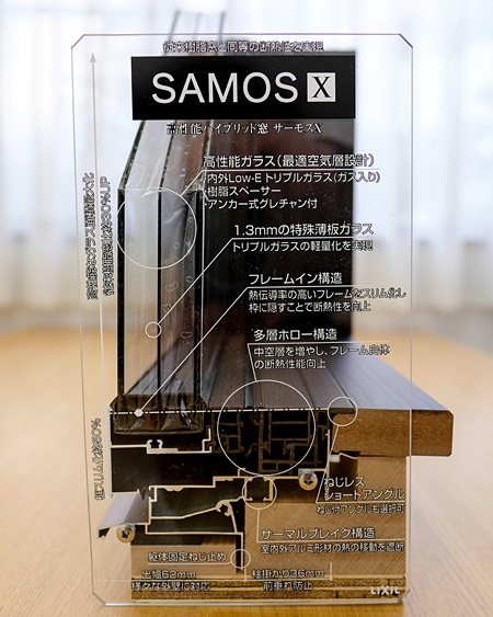 A様邸の居室部に取り付けられた同じサッシのカットモデルです。