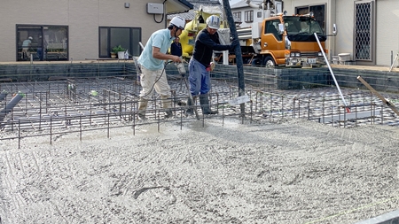 基礎耐圧版部のコンクリート打設作業を行いました。