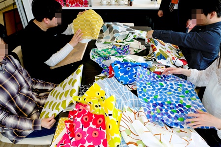 北欧の素敵なファブリックを自由に選んで頂き、早速作成に掛かります。