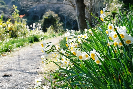 峠は、見晴最高! 潮の香りそして水仙の花の香りで満たされていました。