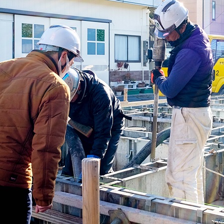 基礎立ち上がり部のコンクリート打設作業を行っています。