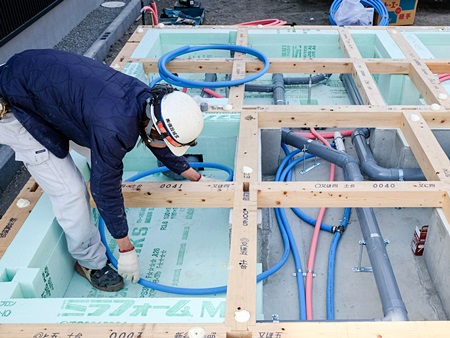 基礎内の給排水工事も、しっかりとメンテナンスのことを考え、
