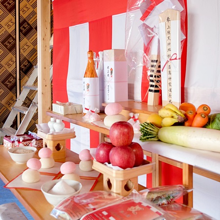 お餅まきは、ご近隣様、そしてゲストの方々にお集まり頂きまして、