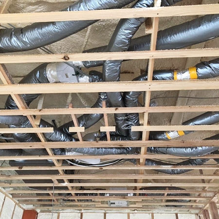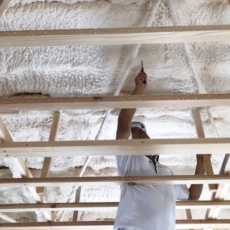 本日は、現場吹き付け断熱施工のチャック作業についてです。