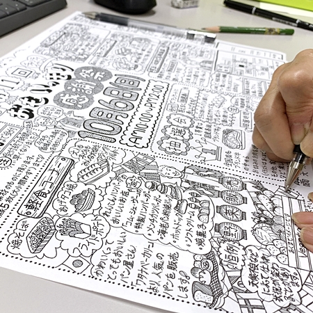 『おもいっきり感謝祭わくわくフェスタ』の手描きチラシ作成中です!