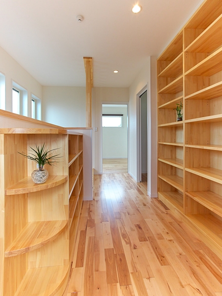 そんな大切な家族の本を収納できる二階の廊下スペースは、