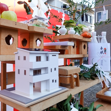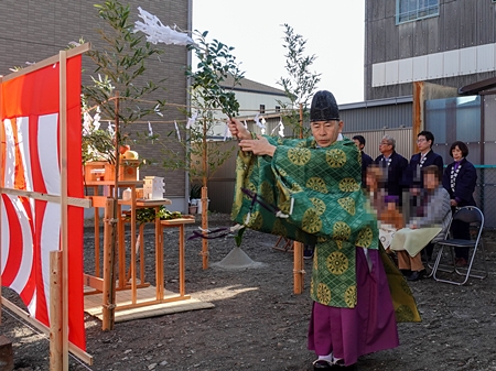 工事の前に、土地を清め、何よりもお客様の、 永遠の幸せを願い地鎮祭を執り行わせて頂きました。