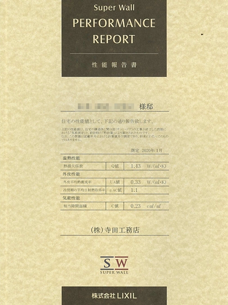上の画像は、ご竣工時に各お客様にご提出させて頂いている【性能報告書】です。