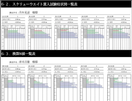 この五カ所の実測結果から、地盤の強さ(地耐力等々)を調査し、
