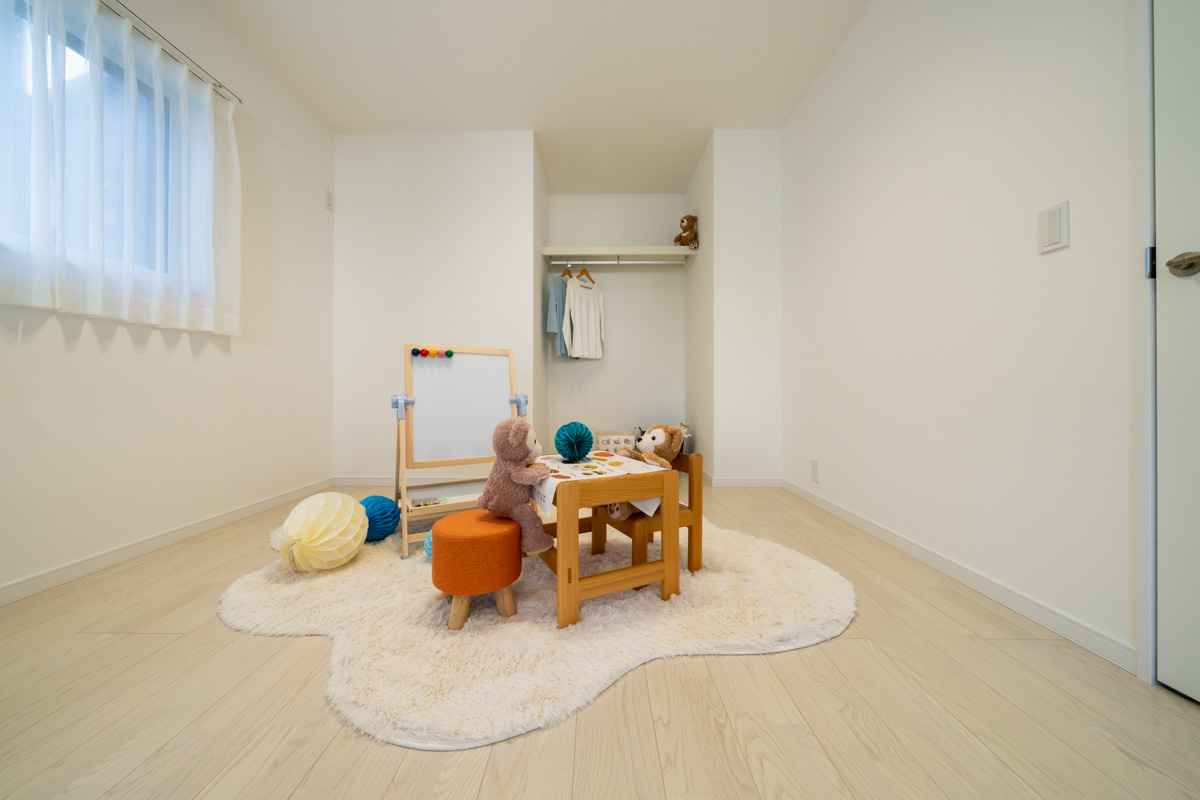 1階の子供部屋は将来2つに区切れるように設計。子供が小さい頃は大きなキッズルームとして大活躍‼
