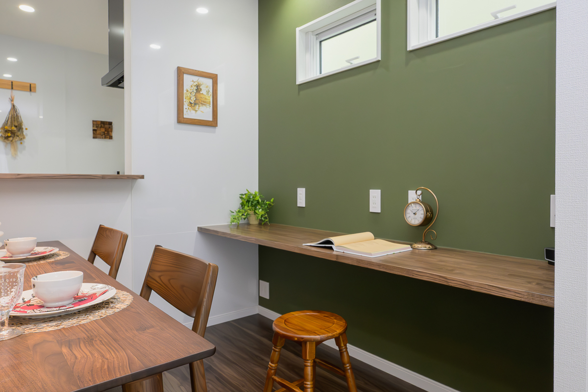 その後ろにはカウンターデスクがあり、左手側の壁はマグネット対応となっております。