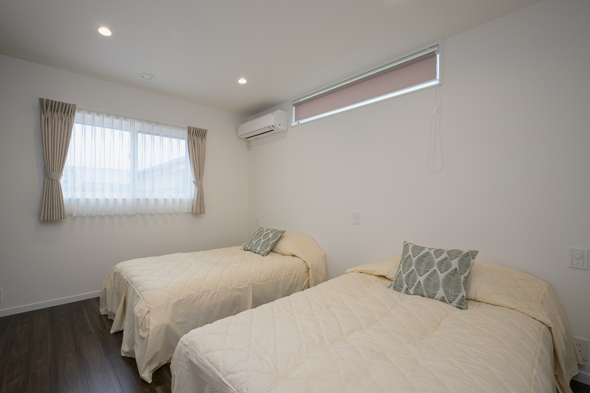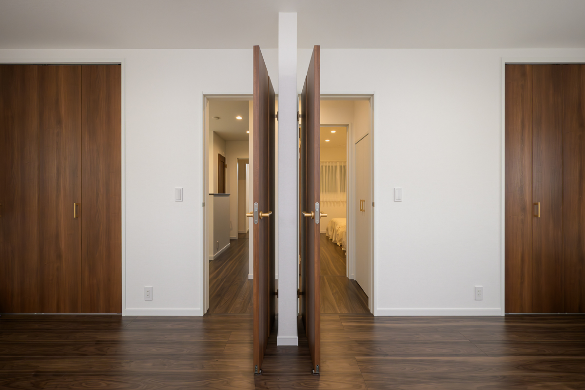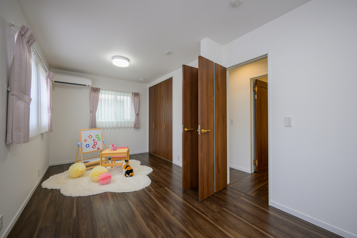 お子様居室は2部屋繋がっており、広い空間として使用できます。将来的に仕切ることもできるように設計。