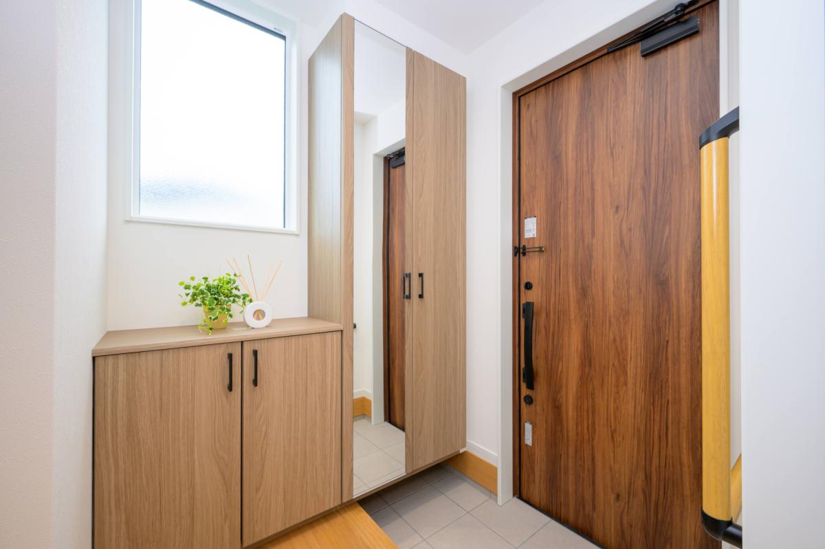 光を取り入れるためにFIX窓を採用。明るく開放的な玄関に。