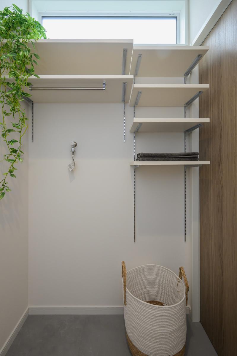洗濯機は脱衣スペースに。ワイドな高窓により明るさも十分‼