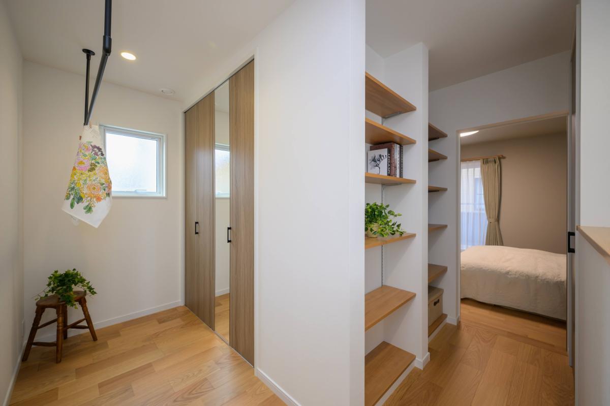 クローゼット前に室内干しスペースも確保。干した後、すぐに収納出来る導線。