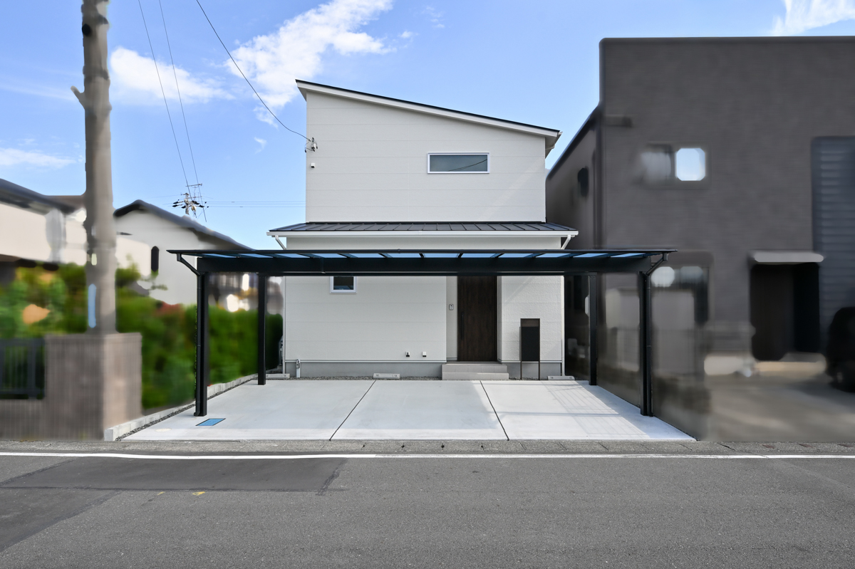 カーポートも含めモノトーンカラーでまとめることで、シンプルかつ洗練された外観に。